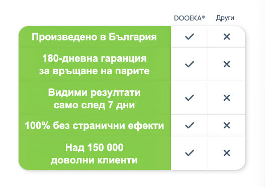 „Откакто се помня, все съм имала подути лимфни възли на врата и това ми създаваше ужасен дискомфорт и несигурност. Честно, доста си страдах заради това. Обаче имах късмет – попаднах на DOOEKA®. В началото си виках: „Ей сега, още един продукт, дето едва ли ще подейства…“ – ама реших да го пробвам. И какво да ви кажа – само след няколко дни бях шашната! Отокът на врата ми видимо спадна, а с времето резултатите ставаха все по-добри. Вече не се притеснявам за врата си, а и си върнах перфектната челюстна линия. Направо друго усещане!“